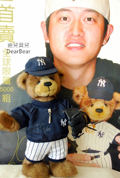 這隻王建民典藏泰迪熊是由許又仂(Elaine Hsu)老師設計